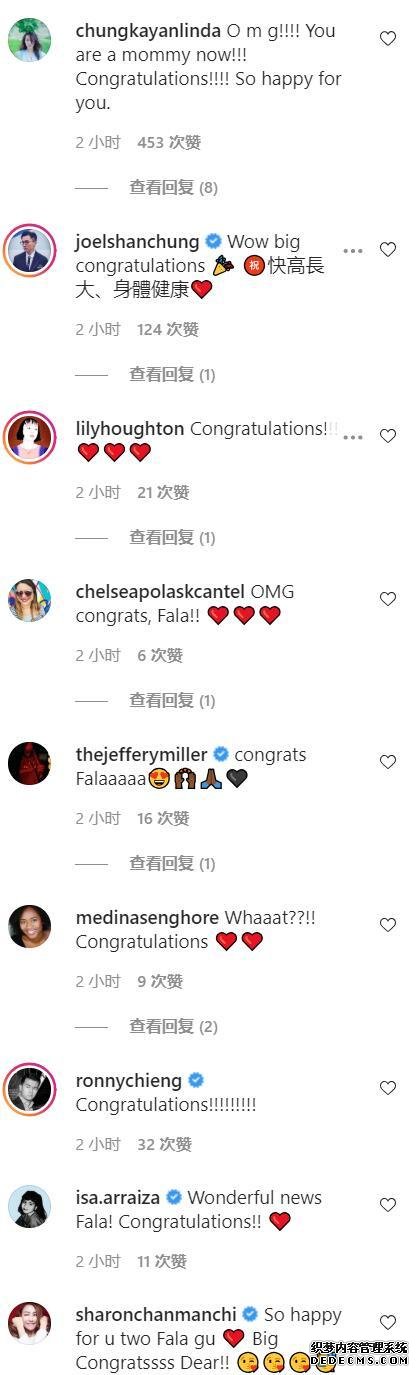 對此,鐘嘉欣、陳山聰、陳敏之等明星紛紛送上祝福。