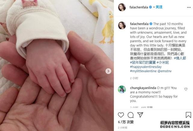 2月14日當天,香港知名演員陳法拉自曝抓住了鼠年的尾巴生下了可愛的女兒,她激動興奮的心情溢于言表。