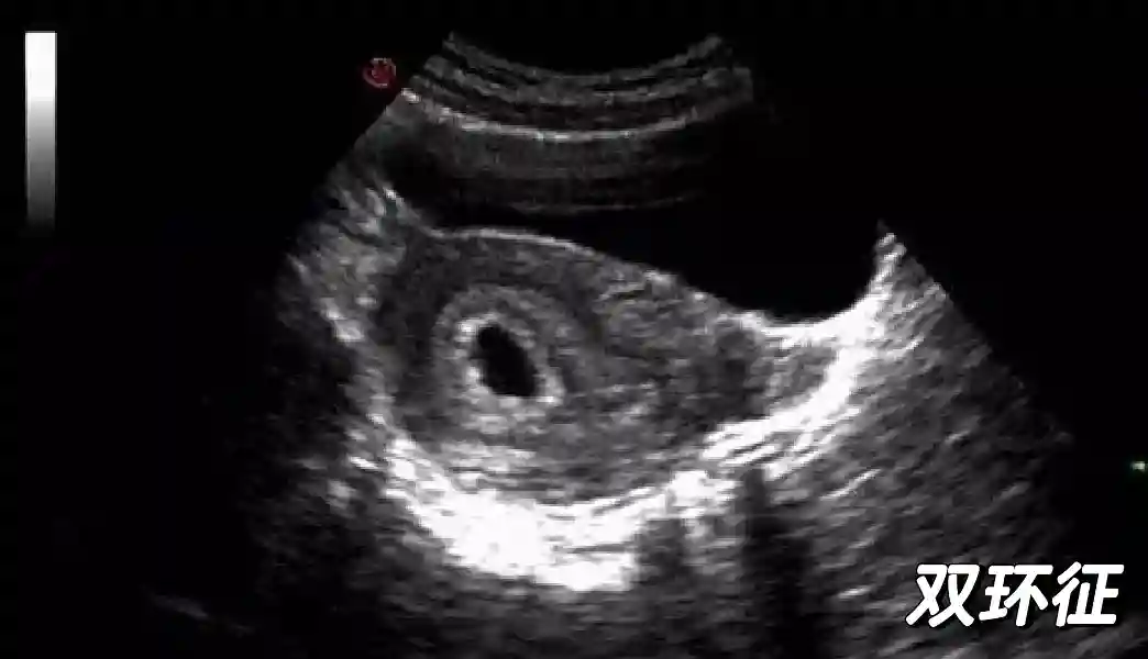 1??妊娠囊:早期妊娠囊:正常妊娠囊位于宮腔上段,表現(xiàn)為宮腔內(nèi)圓形或橢圓形的無(wú)回聲區(qū),周邊為完整的、厚度均勻的強(qiáng)回聲環(huán),強(qiáng)回聲環(huán)厚度≥2mm,強(qiáng)回聲是妊娠絨毛的回聲,隨著妊娠囊的增大,形成特征性的“雙環(huán)征” ,10周以后消失。正常的妊娠囊增長(zhǎng)速度是平均 1 mm /d。
