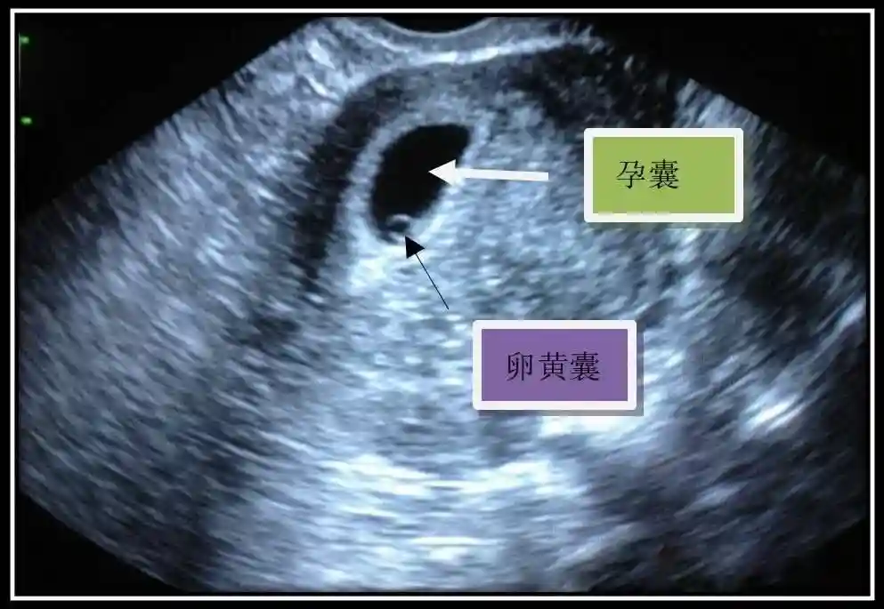 2??卵黃囊:是妊娠囊內(nèi)第一個(gè)解剖結(jié)構(gòu),直徑<7mm。表現(xiàn)為小環(huán)狀,中央為無(wú)回聲,囊壁薄,內(nèi)透聲好。卵黃囊位于胚胎旁胚外體腔內(nèi)。卵黃囊通常在孕5-6周時(shí)出現(xiàn),5-10周穩(wěn)步增長(zhǎng),一般不超過(guò)7mm,至12周消失。妊娠囊的大小與卵黃囊之間有一定關(guān)系,妊娠囊平均直徑> 8 mm 時(shí),經(jīng)陰道超聲均應(yīng)顯示卵黃囊,妊娠囊平均直徑> 18 mm 時(shí),經(jīng)腹超聲均應(yīng)顯示卵黃囊。