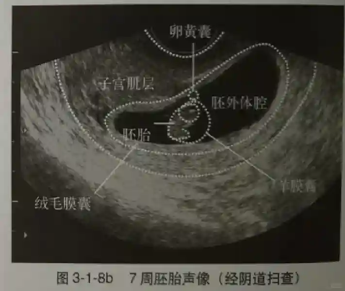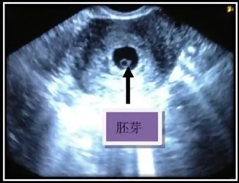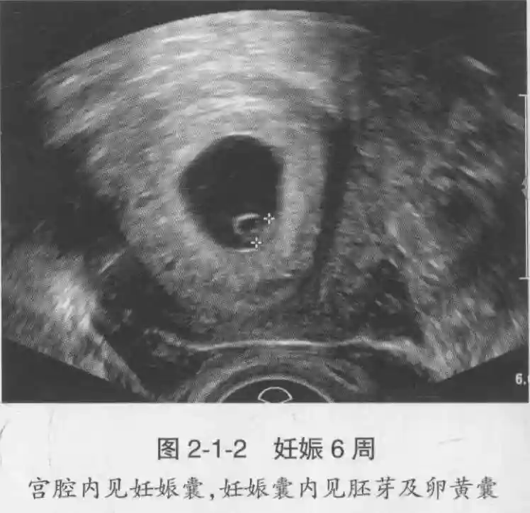 3??胚胎:胚胎通常在6-7周時(shí)可以為超聲顯示,起初為胎芽,表現(xiàn)為卵黃囊一側(cè)局部組織增厚,達(dá)到1 -2 mm 時(shí)才有可能為超聲測(cè)量出來(lái)。達(dá)4-5mm時(shí)可見(jiàn)胎心搏動(dòng),相應(yīng)孕周為6-6.5周,妊娠囊大小為13-18mm。胚芽長(zhǎng)度≥7㎜時(shí)仍未見(jiàn)心管搏動(dòng),提示胚胎停止發(fā)育。胚胎的出現(xiàn)和妊娠囊直徑的關(guān)系:妊娠囊直徑> 16 mm 時(shí),經(jīng)陰道超聲應(yīng)顯示胚胎。妊娠囊直徑> 25 mm 時(shí),經(jīng)腹超聲均應(yīng)顯示胚胎。