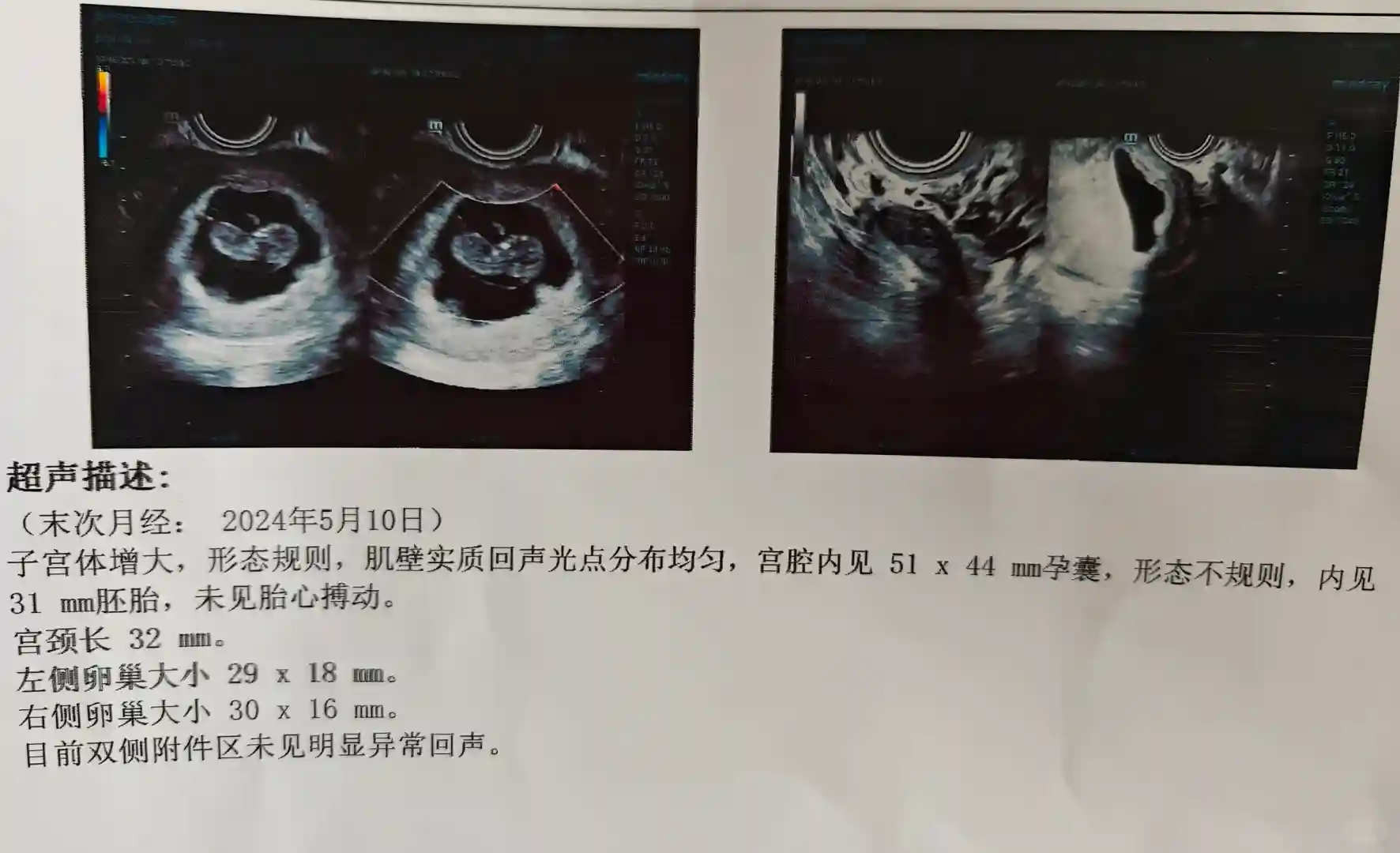 我一直不愿去接受,不愿相信,我的寶寶胎停了,8月9號那天高高興興去做Nt,卻被告知胎停了去找醫生重新開檢查單,我整個人都是懵的麻木的,心一下就顛到谷底,重新做了彩超還是一樣的沒有胎心了,我怕誤診,下午又去了看了中醫,醫生把脈說看你氣色挺好的,寶寶都挺好的,但還是建議去大的權威醫院再去確診一下,比較心安一點,我們又去了離家近的省中醫院,醫生問我寶寶要嗎?我說要的,醫生換了兩臺設備跟我進行了彩超,還是一樣的結果,我還是不敢相信我的寶寶已經離開了我,我心想可能是胎心太弱了儀器沒有測出來,醫生建議我做藥流加清宮,我說我考慮一下,我等了5天,期間我還買了胎心監測儀,心想等監測儀到了我自己測,不管在什么位置我都給測出來,后面我出血越來越多了,13號我去了醫院,醫生準備給我開藥流加清宮,因為我的寶寶有3個月了,寶寶有點大了,做無痛人流會做不干凈會復發我還是要來做清宮手術,我還是抱著一絲希望,如果能保胎,不管打再多的針我都愿意,我叫醫生給我又開了一次彩超,那天人特別多,我們排了好久,我坐在醫院長椅上,我感覺小腹一陣一陣的痛,先是流血,后面羊水破了,到我了,我去做彩超時流了好多血,醫生給我做彩超時說現在沒有孕囊了,我把檢查單拿給門診醫生看,醫生說我子宮內膜增厚,要趕緊做手術不然到晚上點會大出血,我好害怕,做手術前是不能吃任何食物包括水也不能喝,因為知道可能會做抽血檢查昨晚22:00我就禁水禁食了,正好符合做手術的要求,醫生說麻醉師有兩臺手術做完才能過來,那一整天我都沒有覺得餓,更多的是害怕,心疼,在要做手術前半小時,我的寶寶自主流產了,我的寶寶或許也是心疼媽媽,所以我只做了15分鐘的手術,醫生說叫我別難過,優勝略汰嘛,我還是好難過,意難平,我的大寶是個健康的寶寶,二寶卻胎停了……#胎停